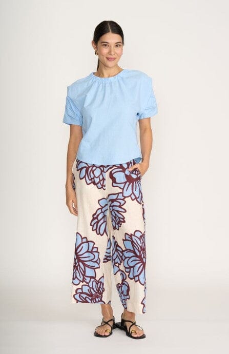 Foil Its Only Natural Linen Pant. Striking printed linen pants with soft widish legs, pockets and elasticised back for comfort. Made from a luxurious linen, they feel like heaven on the skin. Worn back with a single-colour tee and some sandals or add the matching duster and heels for a dressier occasion