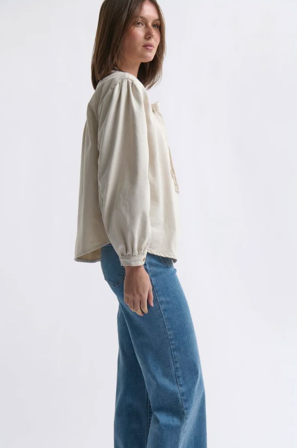 Denim with a feminine twist, the pop-over Kireina Kelly Shirt is defined by a soft pussybow neckline and subtly puffed long sleeves. Style it with tonal or contrast denim for a look that feels effortlessly polished yet relaxed.