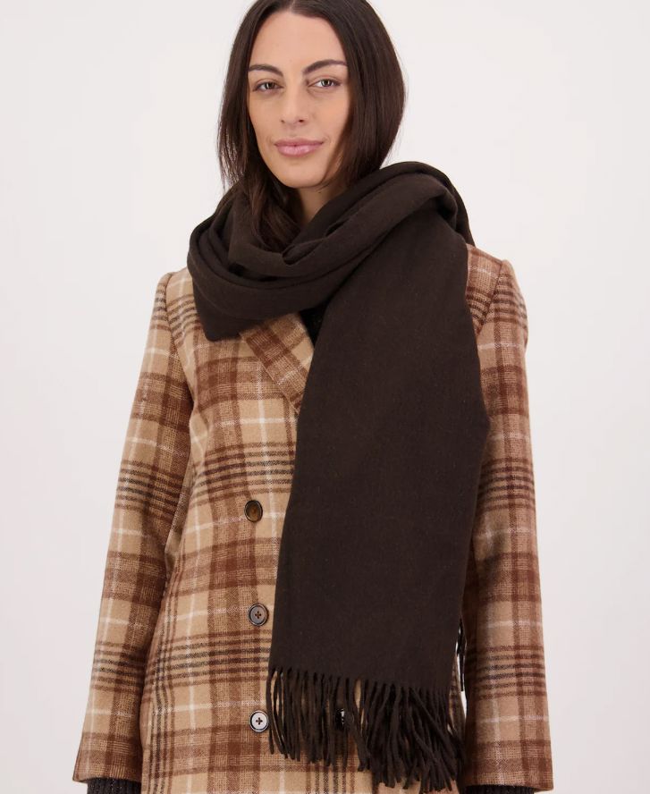 The Women's Wide Scarf in Espresso is one of those pieces that quickly becomes more than just a scarf. Made from 100% wool, it's incredibly soft to the touch while delivering serious warmth, making it easy to wear all day without feeling heavy or scratchy. Its generous width opens up plenty of ways to use it, wrapped around your shoulders, draped as a scarf, or folded up as a cosy blanket over the back of the sofa. It's also a great travel companion, easy to pack and perfect for keeping warm on flights, whether you're using it as a wrap or laying it over your knees. Finished in a rich Espresso tone that feels timeless and easy to style, this is a beautifully warm, versatile piece you'll reach for at home and away.