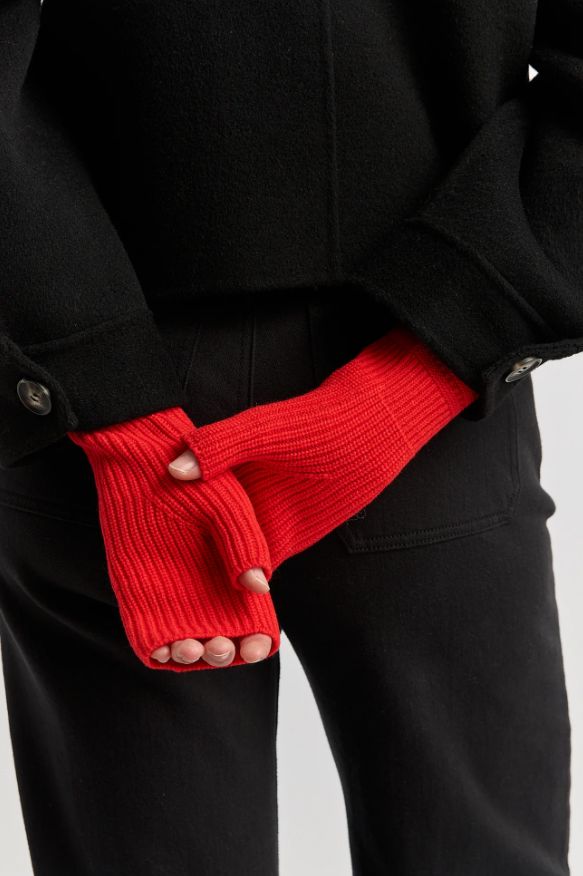 The TOORALLIE Fine Rib Open Mitten is a practical winter mitten with open ends, designed for practical daily use and knitted with a soft rib stitch.