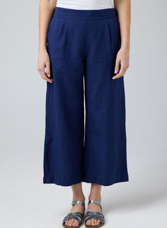 Crafted from 100% linen, the Hayley Pants are a cropped wide leg style, with an elasticated waistband through the back and in seam side pockets. Complete with belt loops, this easy wearing style can easily be dressed up or down, and pairs perfectly with Cake's variety of printed cotton tops.