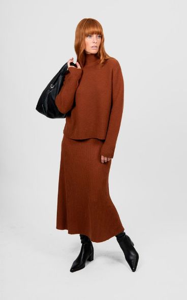 The Bridge and Lord Sophie panelled flare skirt is a rib panel mid-length skirt with a flattering fit and flare silhouette