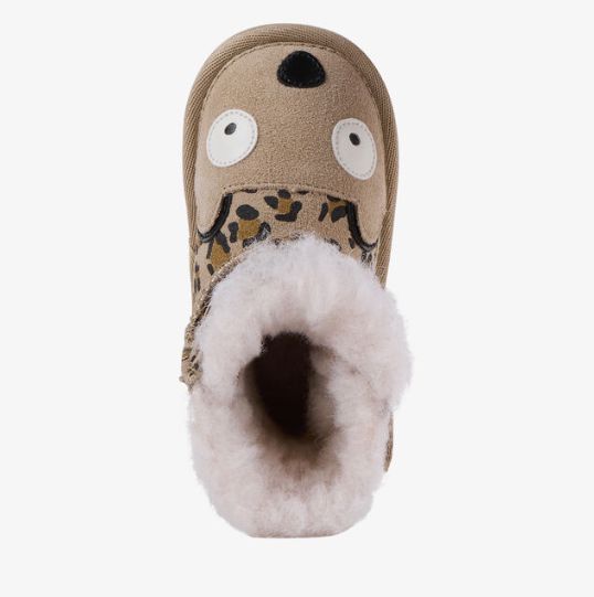 For little cubs finding their feet, this mini-height boot is as practical as it is playful. Designed for early walkers, it features a fun all-over cheetah print, cute face and ears, and a velcro strap to make dressing quick and easy. Lined with soft Australian Merino wool and built on a flexible sole, it’s supportive, snug and full of character, just like them.