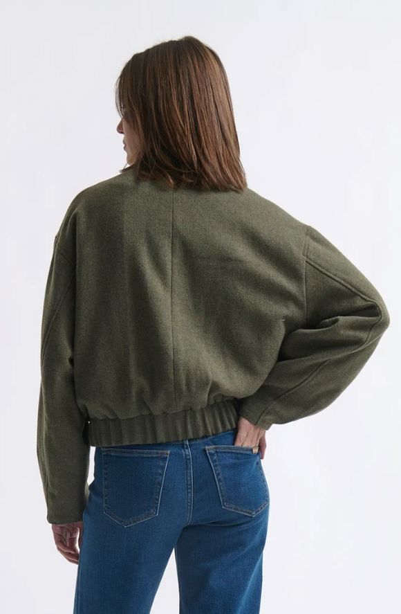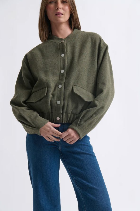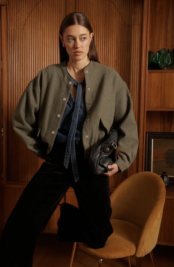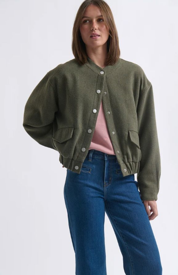 The uber-cosy Peyton Bomber takes its cues from 1950’s American sportswear. This cool weather layer piece features snap button front, slightly puffed sleeves and elasticised waistband. Wear with your favourite Kireina jeans and boots for that quiet luxury look.