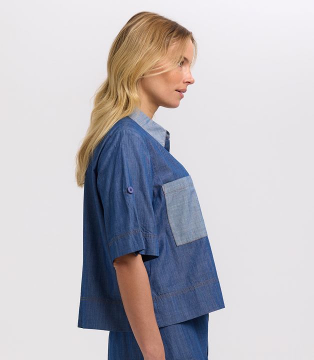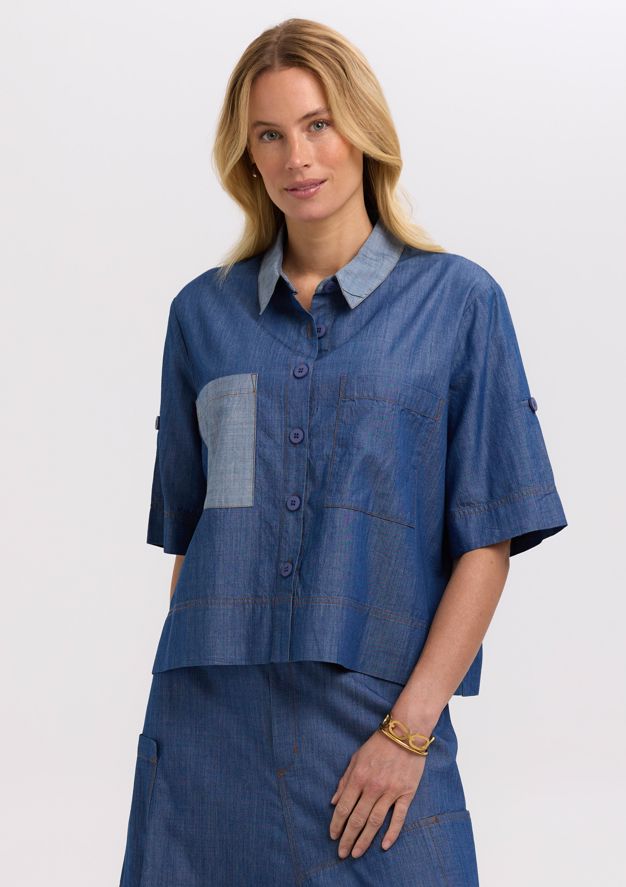 Fit and funky - the two tone Denim Shirt from Zaket and Plover pairs perfectly with the Z&P Denim Pants or Skirt to give that funky double denim vibe. Cropped in length, easy to wear untucked or tucked in.