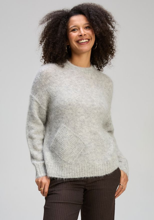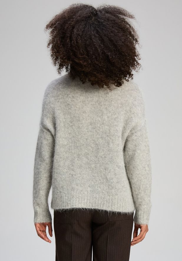 Crafted from a luxurious alpaca blend, it offers a gentle, breathable warmth and a refined drape. The relaxed silhouette sits comfortably on the body, making it easy to wear on its own or layered under coats and jackets. It’s a timeless knit that feels both cosy and polished.