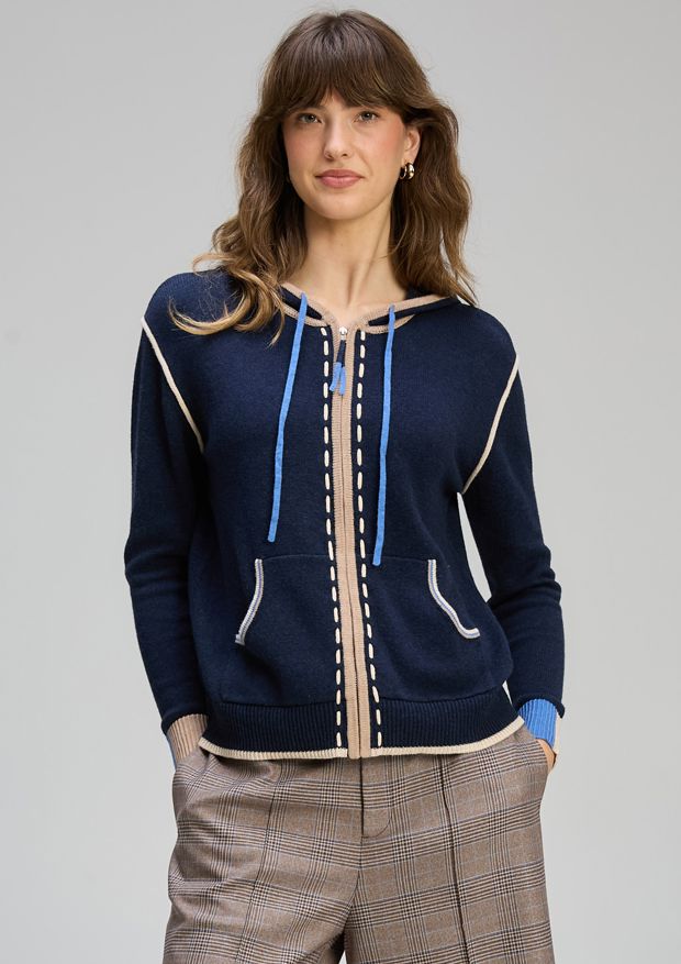 - Zip-up front for versatile styling